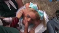 In this steamy video featuring a threesome porn scene with three attractive partners, the blonde girl with ribbons in her hair is the center of attention as she indulges in a series of scorching hot sexual escapades that leave viewers in absolute awe.The beautiful blonde bitch takes on both guys with relentless energy and desire, setting the scene for a night filled with unparalleled pleasure and satisfaction.With the captivating sound of moans filling the air and passion oozing from every pore, the threesome explores each other's bodies in ways that make onlookers shiver with anticipation and longing.As the blonde girl's lips wrap around a guy's engorged cocks, she delivers blowjobs like none other – gagging on the massive shaft as her throat constricts around the throbbing member, eager to give her partner immense pleasure in return for her own excitement and lust.As one guy enters her from behind, with his hands reaching around to cup and tease her perky, round boobs, the blonde bombshell is in the grip of pure ecstasy as she revels in each deep thrust.Her cries of ecstatic pleasure echo throughout the room as she succumbs to the raw sexuality of the moment, clenching tightly around his cock to keep him buried inside her until they reach their mutual climax.But this blonde bombshell isn't satisfied with just one guy, and in an act of pure debauchery, she engages herself into a double blowjob scene, servicing both horny men at the same time – a sight to behold as the intensity rises with each stroke of their cocks.Her talented hands and eager mouth create a mesmerizing frenzy, pushing everyone involved to the edge of blissful ecstasy before diving headfirst into the abyss of pleasure that only a DB experience can bring.As this sultry scene reaches its crescendo, the focus shifts to the blonde's sensitive regions her clit and labia, where she experiences an erotic interlude filled with electric shocks of pleasure.With the rhythmic flicking of her clit and sucking of her pussy lips, she draws her own orgasm nearer with each touch.In a final act of sublime exhibitionism, the guy is compelled by the situation to deliver a facial, showering the beautiful woman with his warm cum, covering her face in the signs of their shared passion.The blonde girl revels in this ultimate display of satisfaction and pleasure as the room fills with the aroma of desire and the sight of a gorgeous sexual scene that can only be described as splendid and lovely.
